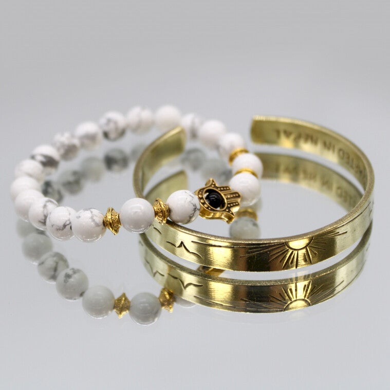 Pour le total look, nous recommandons de porter 2-3 bracelets ensemble ainsi que le collier,